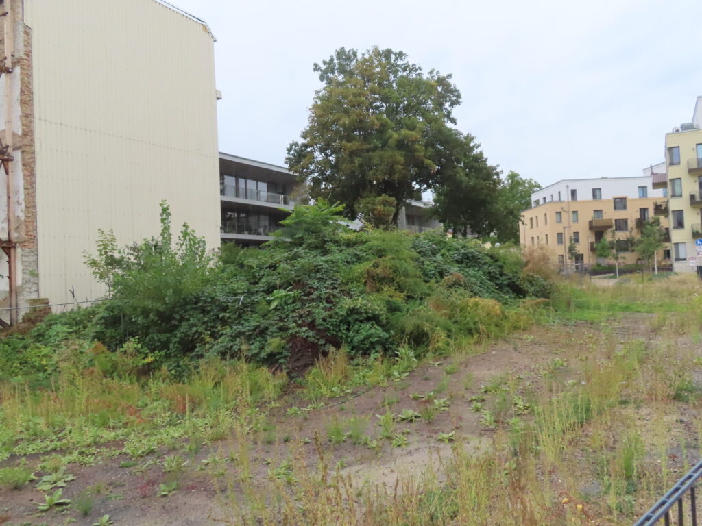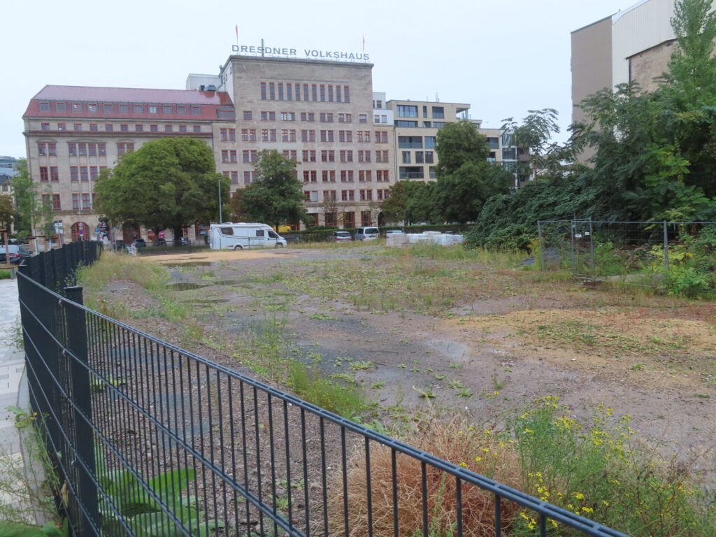 Schnell mal die Suchmaschine angeschmissen und siehe da. Es war eine Pressemeldung vom 19. September, die mir den Namen näher brachte. Da vermeldete die Stadt Dresden, dass am Dienstag (23. September 2025) die Bauarbeiten für einen neuen öffentlicher Spiel- und Quartiersplatz an genau dieser Straße beginnen. Ich bin mal durch den trüb traurigen Herbstregen gestapft, um mich von dem Beginn der Bauarbeiten zu überzeugen. Doch was muss ich sehen, keine Bauarbeiter und schon gar kein Baugerät, nur ein schnöder Bauzahn der ein Gelände abgrenzt.