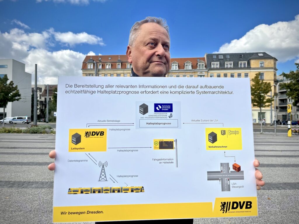 „Nach dem Einsturz der Carolabrücke und der erst kürzlich erfolgten Freigabe des Terrassenufers wird analysiert, wie sich der Verkehr auf dieser Achse entwickelt, bevor mit dem STA die Signalschaltungen modifiziert werden“, informiert die DVB.