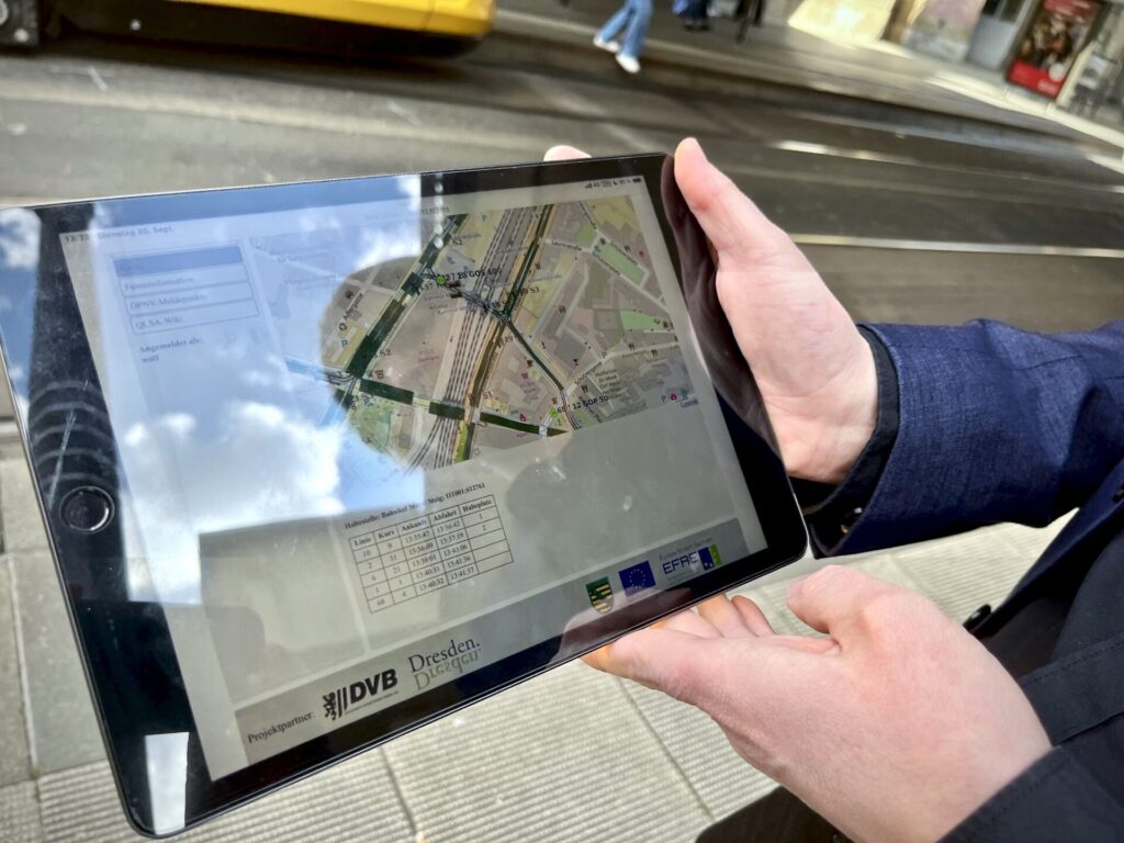 Das System ist eine Gemeinschaftsproduktion der Landeshauptstadt Dresden (LHD), vom Straßen- und Tiefbauamt (STA), der Technischen Universität Dresden (TUD) und den Dresdener Verkehrsbetrieben (DVB). Die Entwicklungskosten konnten mit rund 108.000 Euro gering gehalten werden, da die technischen Voraussetzungen bereits im Rahmen eines anderen Gemeinschaftsprojekts von STA und DVB zur Optimierung der Ampelsteuerungen geschaffen wurden. Das aktuelle Projekt wurde mit 75 Prozent, 81.000 Euro aus dem europäischen Fonds zur regionalen Entwicklung (EFRE) gefördert. Rund 27.000 Euro beträgt der Eigenanteil. „Die DVB sind mit diesem Projekt Vorreiter für die Branche zur Nutzung digitaler und innovativer Anwendungen zur Verbesserung des ÖPNV. Diese Haltestellenpositionsanzeige im städtischen Nahverkehr gibt es europaweit in Leipzig und Dresden“, so Pressesprecher Falk Lösch.