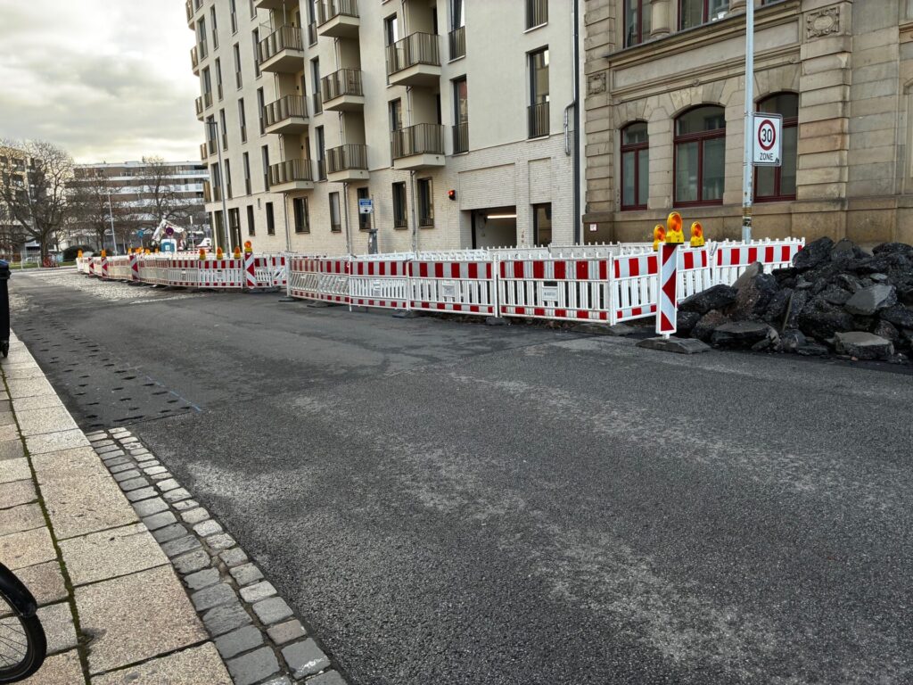 Seit Montag (8. Dezember 2025) und noch bis Dienstag (23. Dezember 2025), setzt das Straßen- und Tiefbauamt die Laurinstraße instand. Die Seitenbereiche der Fahrbahn und die Straßenabläufe für Regenwasser sind kaputt und werden jetzt repariert. Betroffen ist der Abschnitt zwischen Könneritzstraße und Schützenplatz. Diese Arbeiten sind nur die Vorbereitungen für das Aufbringen einer neuen Asphaltoberfläche auf der Fahrbahn zwischen Könneritzstraße und Schützenplatz.