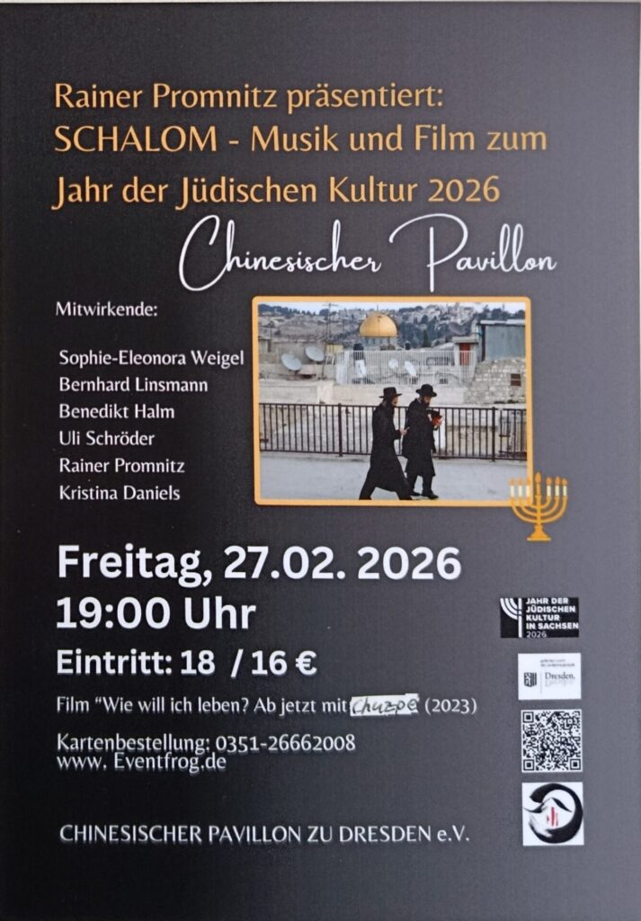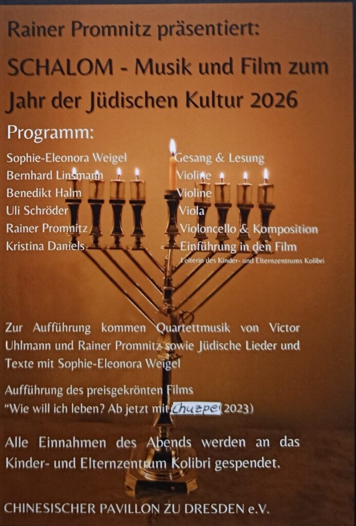 am 27. Februar ist Kolibri e.V./Villa der Kulturen Teil der Veranstaltung „Schalom – Musik und Film zum Jahr der jüdischen Kultur in Sachsen“. (siehe angefügte Anlagen).