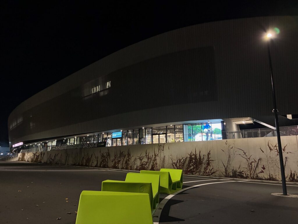 Als wir am Stadion ankamen, standen wir nicht ganz alleine vor der geschlossenen Kartenverkaufstelle. An dieser war aber leider kein Hinweis zufinden. Also begaben wir uns zum Ostragehege; kann ja sein das da gespielt wird. Ein Platz war hell erleuchtet und im Licht jagten Menschen Bällen hinterher, aber leider waren dies nur Trainingseinheiten. Weit und Breit kein Boreaanhang und niemand mit DSC Schal.