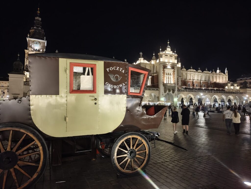 Als wir uns schon entschieden haben, mit dem Bus zurück ins Stadtinnere zu fahren, fährt ein Uber an uns vorbei, dem wir winken. Ich frage auf Polnisch nach dem Fahrpreis für etwa 10 Minuten – 20 Zloty, das entspricht etwa 5 Euro. Wie sich herausstellt, ist der Fahrer der deutschen Sprache mächtig, hat u.a. in Mainz und u.a. Linguistik studiert und macht das Taxifahren nebenberuflich, „ab und zu am Wochenende“. Was er hauptberuflich tut, erfahren wir nicht. Wir unterhalten uns angeregt, schnell wird das Gespräch politisch und bedrückend (Ukraine und Gazakrieg), aber dann sind wir auch schon da.