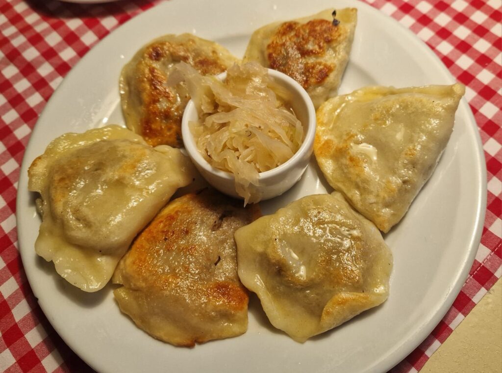 Wir schlendern und shoppen noch ein bisschen herum und essen dann zum Abschluss des Tages Pieroggen mit Pilzen und Sauerkraut. Das sind die besten typisch polnischen Teigtaschen (in Russland „pelmeni“), die ich jemals gegessen habe…
