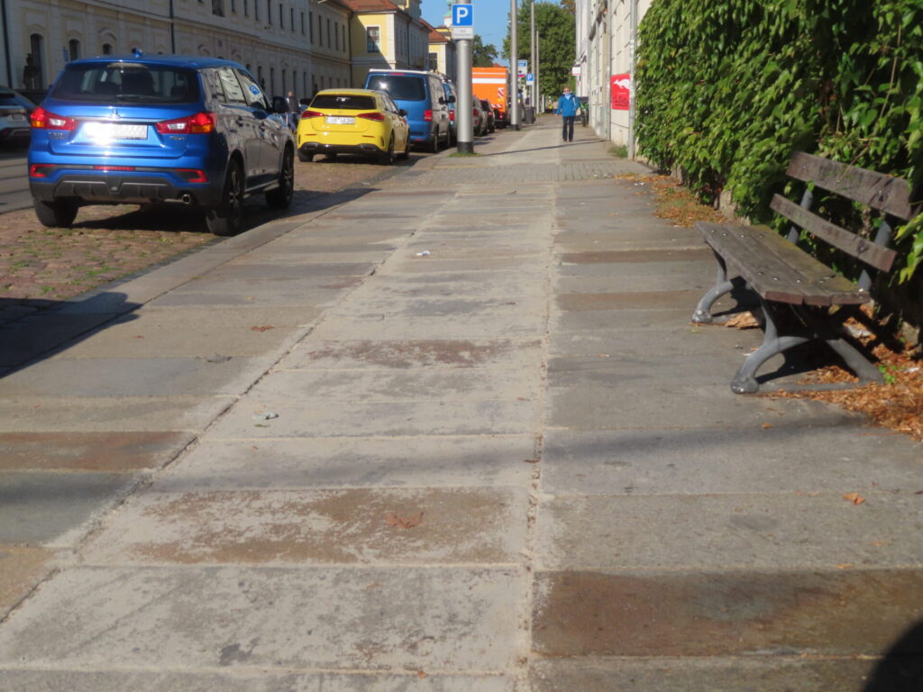 Die Frage wer die Schicht zu verantworten hat stellt sich vielen Menschen. In ganz Dresden liegen die Gehwegplatten und nirgendwo sind ihre Fugen verschmiert. Das Laufgefühl wird massiv gestört, da der Fußboden merklich stumpfer ist als auf den originalen Platten. Hoffen wir, daß die Verantwortlichen zur Verantwortung gezogen werden und die Fussweg bald wieder im richtigen „Glanze“ erstrahlt.