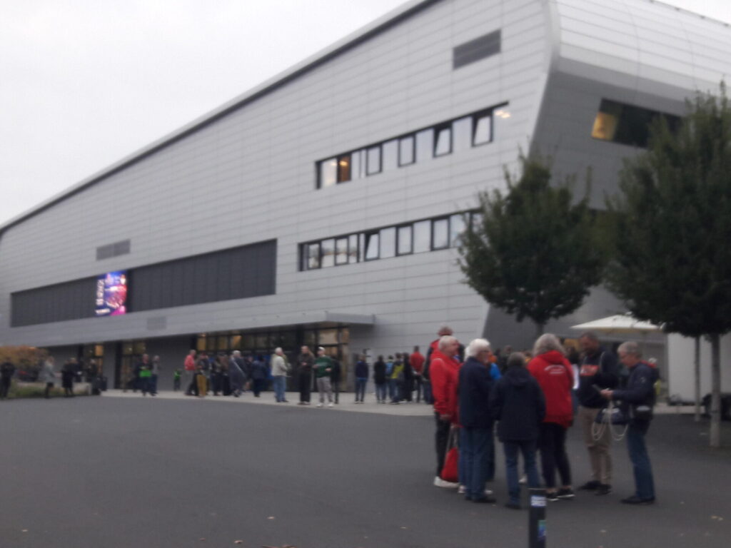 die Handballfans warten in der Dämmerung