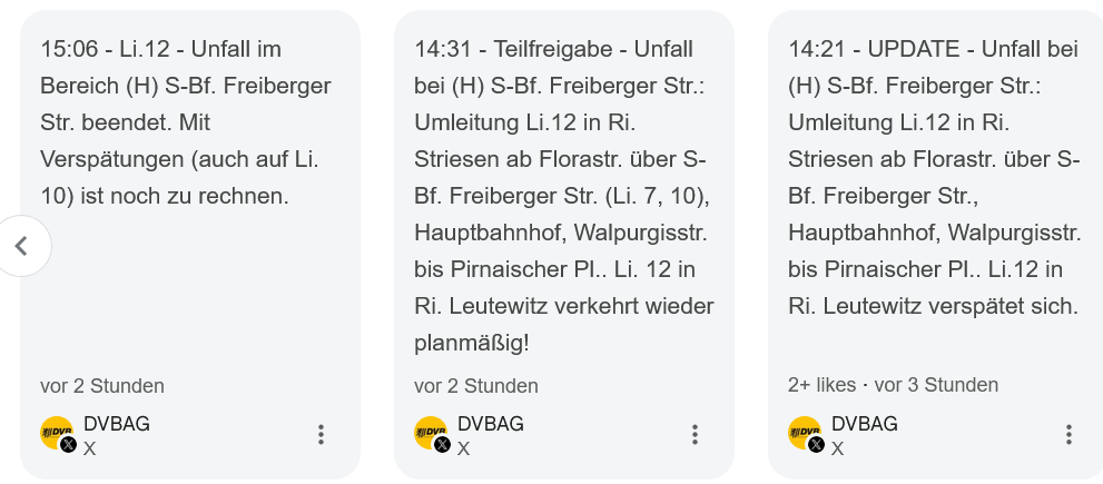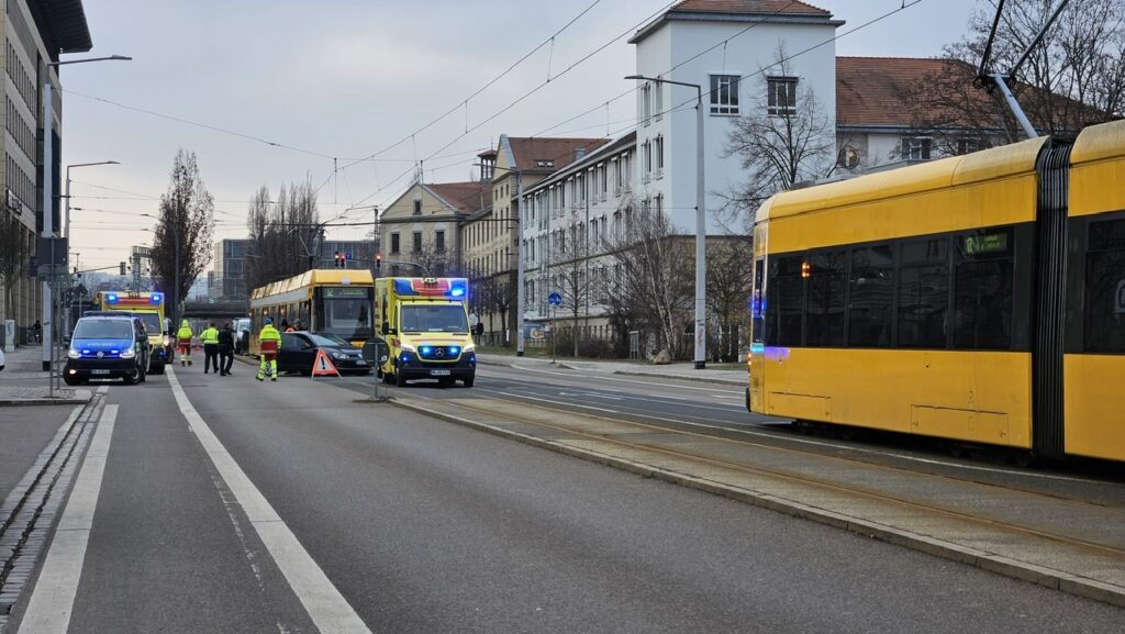 Auf der Freiberger Straße kam es heute zu einem Verkehrsunfall mit einer Straßenbahn.