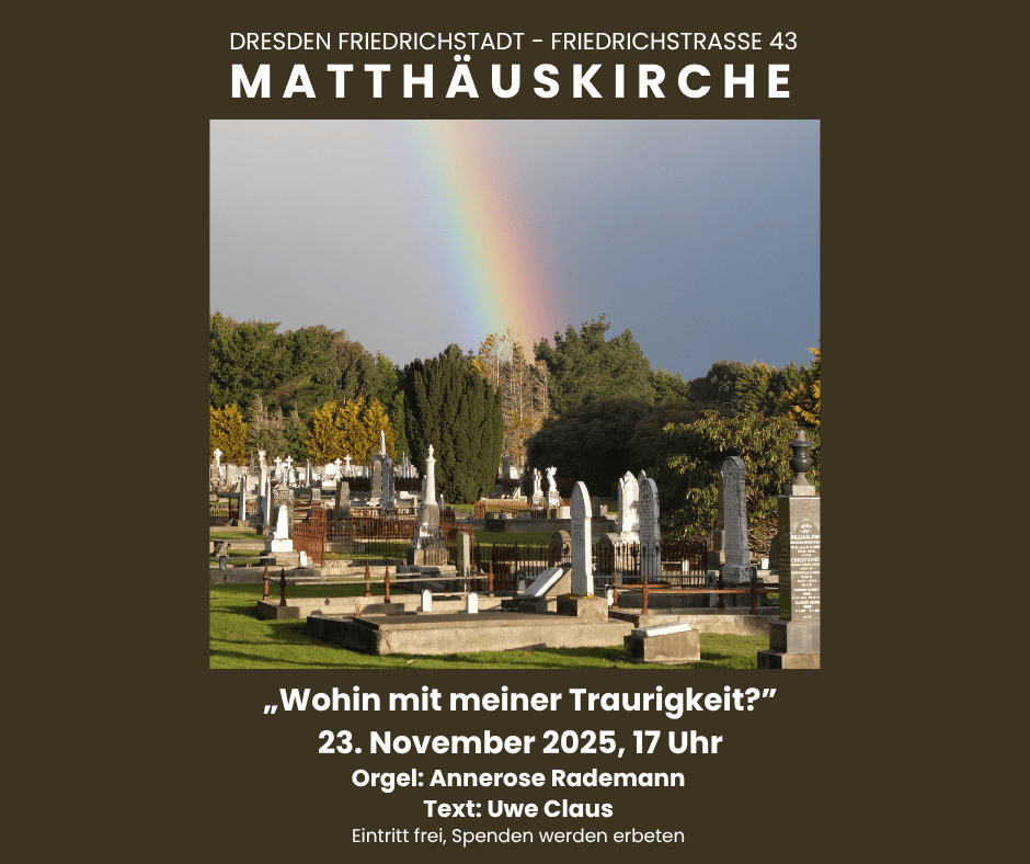 Sonntag, 23. November 2025, 17 Uhr – Matthäuskirche Dresden, Friedrichstraße 43. Eintritt frei.